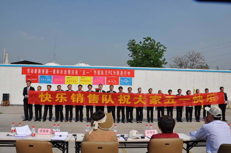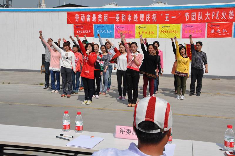 4月28日,山東泰和科技公司辦公樓后廣場激蕩著心潮澎湃的團隊樂曲,哨聲、吶喊聲、加油聲和歡呼聲此起彼伏,來自公司生產、營銷、采購、倉儲、物流、質量、安全信息及行政等八個代表隊的200余名泰和員工沉浸在比賽的快樂中,由山東泰和科技股份有限公司、山東泰和化工進出口有限公司聯合舉辦,以“勞動者最美麗”為主題的“慶‘五一’團隊凝聚力大PK活動”正在如火如荼地進行著。